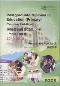 Hong Kong Institute of EducationProgramme handbook : Postgraduate Diploma in Education (Primary) Two-year Part-time Programme = 教育文憑課程(小學)(二年部份時間制)