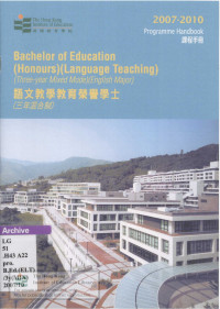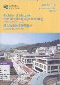 Hong Kong Institute of EducationProgramme handbook Bachelor of Education (Honours) (Language Teaching) Programme (three-year mixed mode) (English major) = 語文教學教育榮譽學士課程(三年混合制)