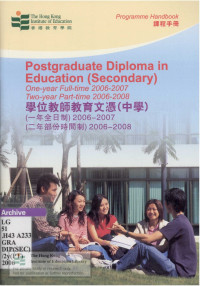 Hong Kong Institute of EducationTwo-year part-time postgraduate diploma in education (secondary) programme : programme handbook = 兩年部份時間制學位教師教育文憑(中學)課程 : 課程手册 /