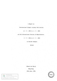 Hong Kong Sir Robert Black College of EducationA report on International Olympic Academy 29th session, 15/6/1980 to 1/7/1980 and 4th international session of educationists, 2/7/1980 to 9/7/1980 in ancient Olympia, Greece /
