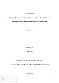 Ma, Ka YuetHong Kong kindergarten teachers’ attitudes towards home-school collaboration, difficulties they perceived and related suggestions : an interview study /