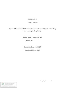 Impact of practicum on mathematics pre-service teachers' beliefs on teaching and learning in Hong Kong /